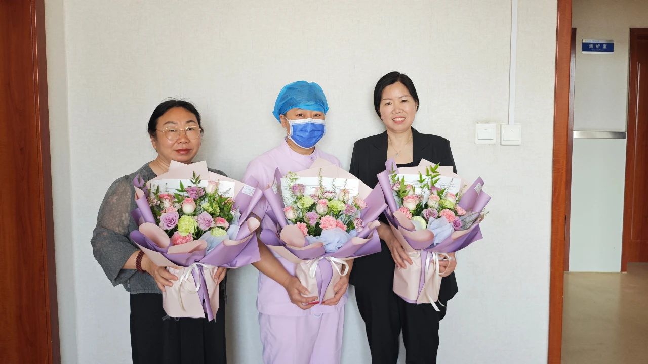 5月12日上午,医院领导带着满满的关怀,走进各个病区,为坚守岗位的护士们献上祝福的鲜花。